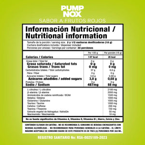 Nuestro Pump NOX EDGE, tiene una mezcla en polvo sabor frutos rojos, diseñada para quienes buscan lo esencial: una fórmula potente, ingredientes funcionales y un sabor que le dé energía a tu entrenamiento.